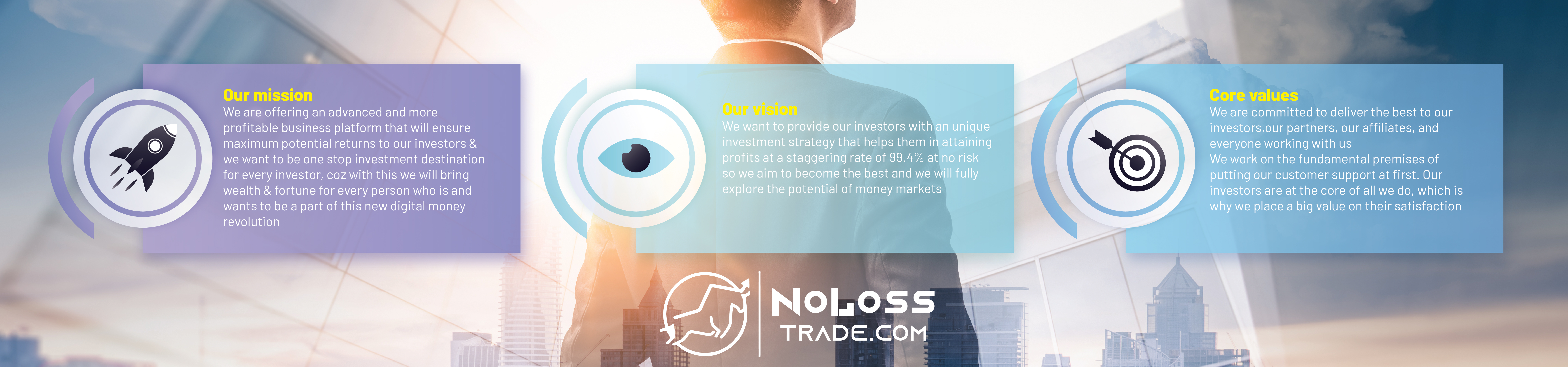 NoLossTrade is established to help every investor cushion the effects of the financial hardish caused by the covid-19 pandemic & with the Bearish markets so that we can bring profits to investors. It is a complete solution for an online investment platform, where anyone can register and invest with and earn crypto profits daily, weekly, and monthly & We are an exceptional Investment platform where we provide the most profitable means for investors to invest funds without any limitations. As of 2022, No Loss Trade has been in operation and has achieved outstanding results. The skills and abilities of our traders and crypto professionals are essential to the successful completion of this cryptocurrency profit-only project. Our profits are guaranteed at 99.4% with no stories. Throughout our professional lives, each of us has honed our financial trading skills to extreme levels and established a solid reputation for having exceptional abilities and extensive expertise in the field of crypto,Forex NFTs, and DeFi.